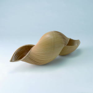 最優秀賞に決まった千葉県から出品の「スパイラルの魅惑」は上記の議論の中から選出された作品である。134点の頂点に立ったこの作品は、無骨に捩られた何本もの竹を縦に壷状の形に纏めた上昇気流を感じさせる潔い作品である。赤茶に染められた色彩も作品の形と呼応して固い信念と勇気が籠められている。ただ、最終的に議論の対象になったのは、肩口に取り付けられた二つの小さな耳冠である。この突起物は作品の力強い量感、上に伸びるムーブマン、湧き上がる生命感を感じさせるテクスチャーを損なうか否かで議論は伯仲したが、形の魅力、動勢の力、質感の強さが勝り、それらの注文を撥ね退けた。