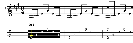 - あとは、延々とタブ譜部に数字を入力していきます。と、いうか、音符部は編集できません。